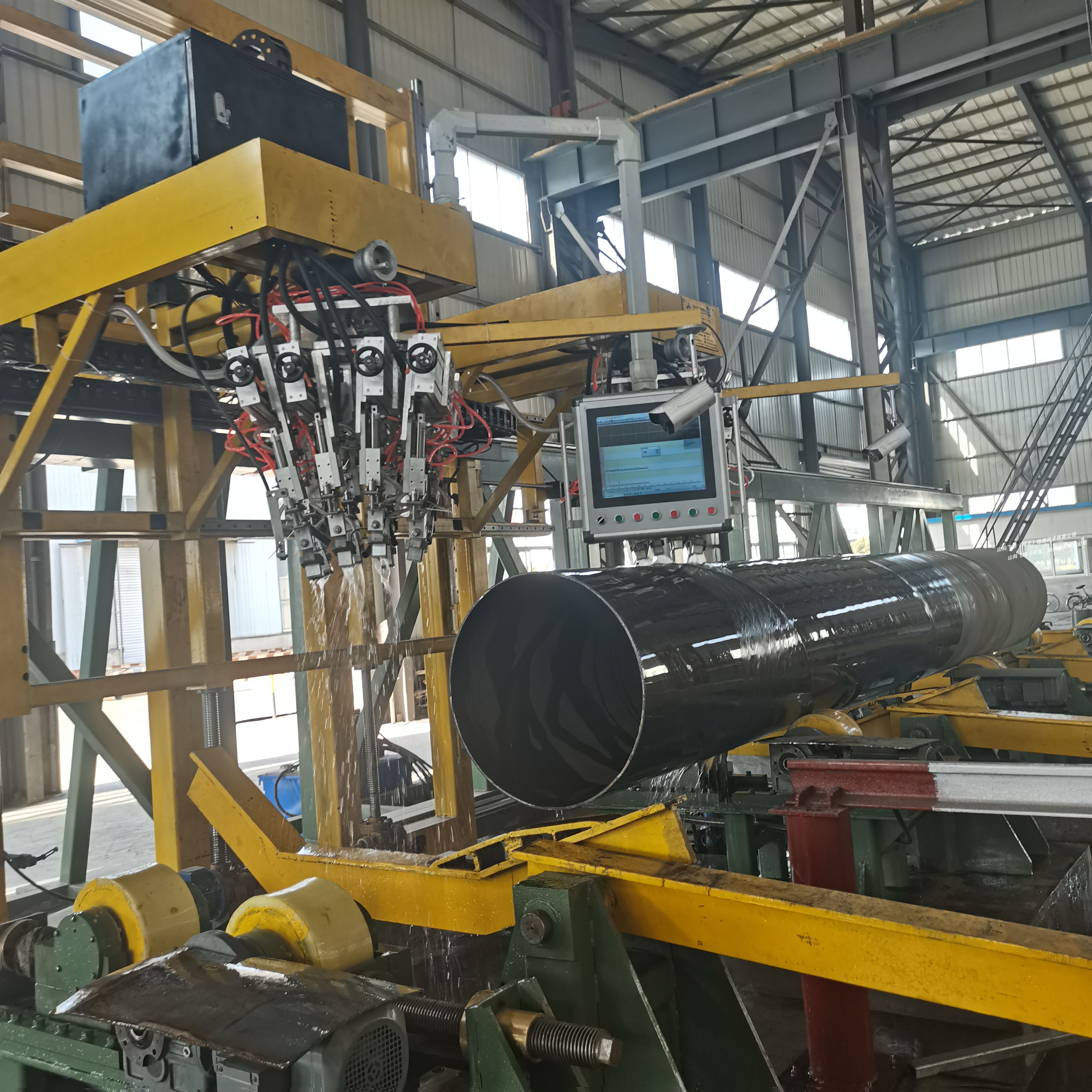 螺旋焊管項目工程的需要,我單位與山東省科學(xué)院激光研究所共同為項目配套制造一套鋼管超聲探傷設(shè)備,該設(shè)備是我單位研制生產(chǎn)系列自動探傷設(shè)備的一種,將用于螺旋焊管焊縫及全管體的缺陷檢測。
